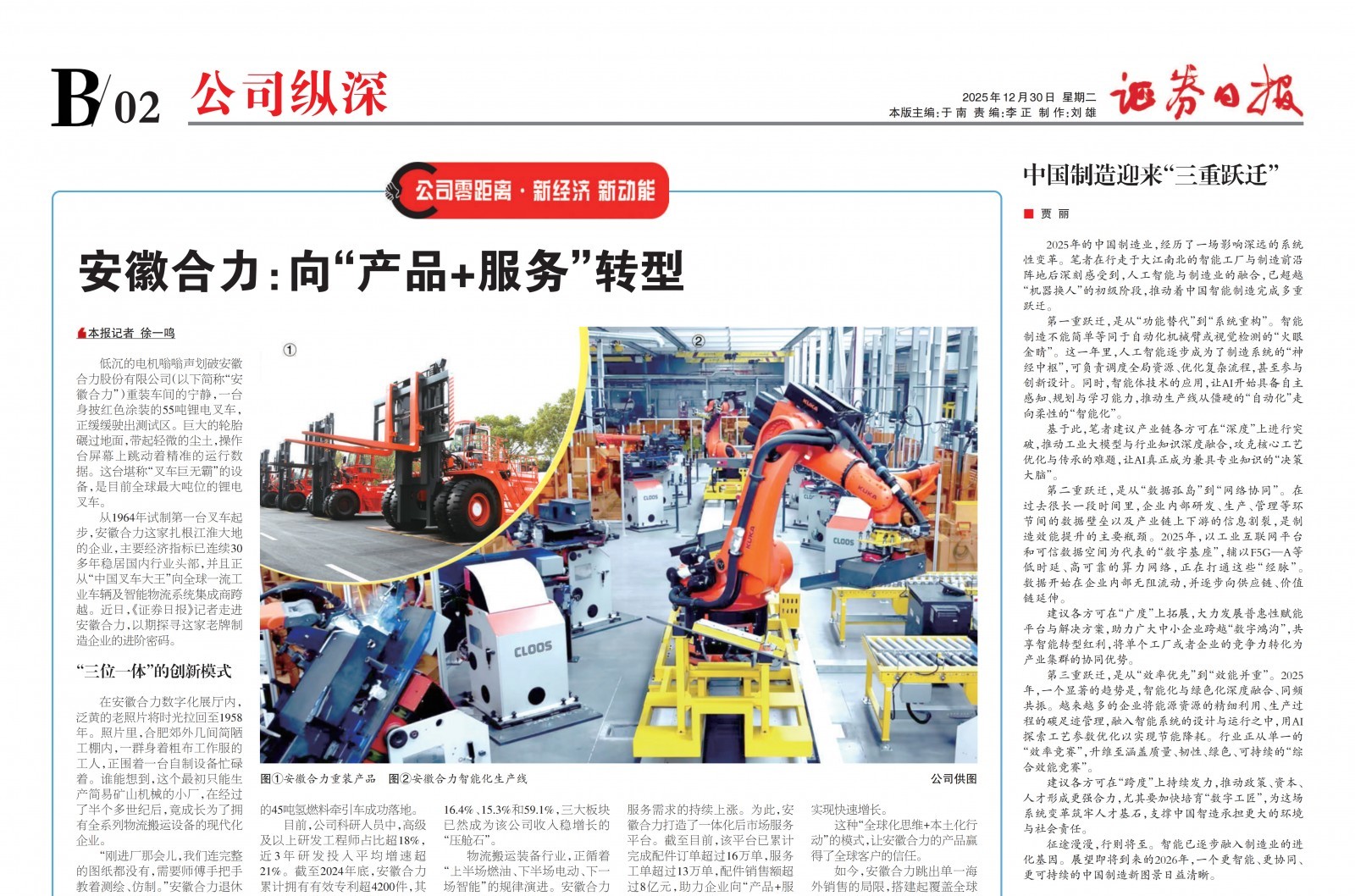 查看詳情 >【證券日報】安徽合力:向“產(chǎn)品+服務(wù)”轉(zhuǎn)型